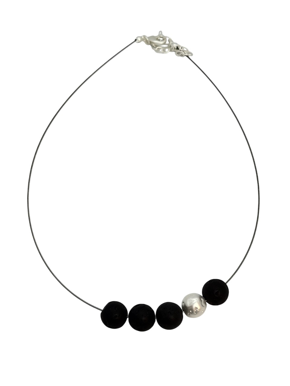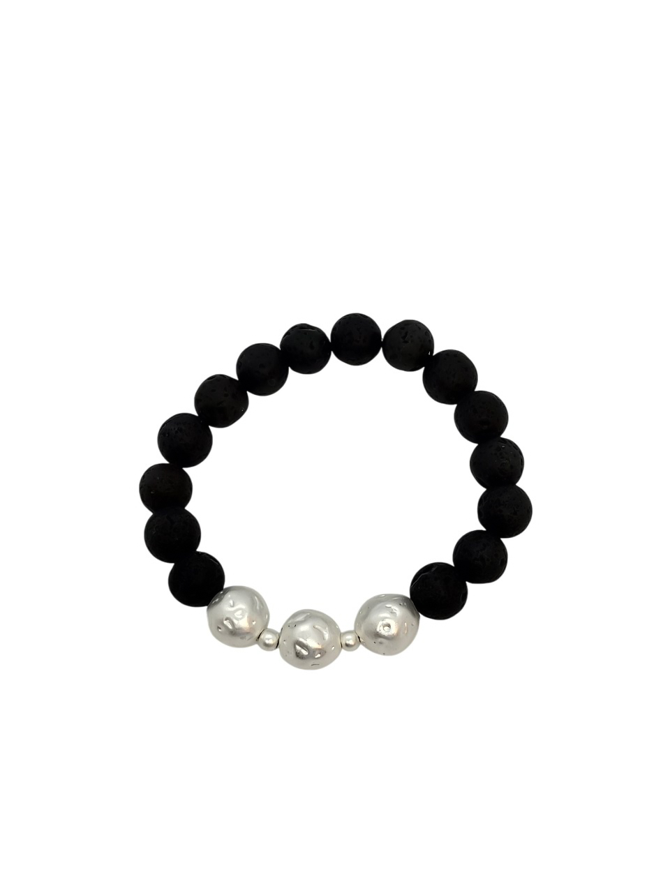 Ein Schmuckset mit Kugeln aus Lavastein in Schwarz und Silber überzeugt durch seine harmonische Kombination aus natürlicher Struktur und zeitloser Eleganz. Die aufeinander abgestimmten Schmuckstücke ergeben ein stimmiges Gesamtbild.