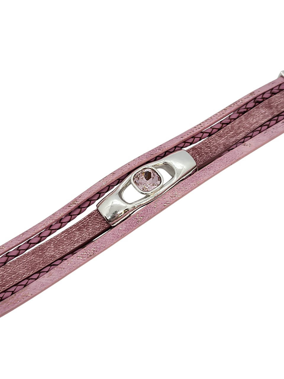 Lederarmband in rosé mit einem rosafarbenen Zirkoniastein.