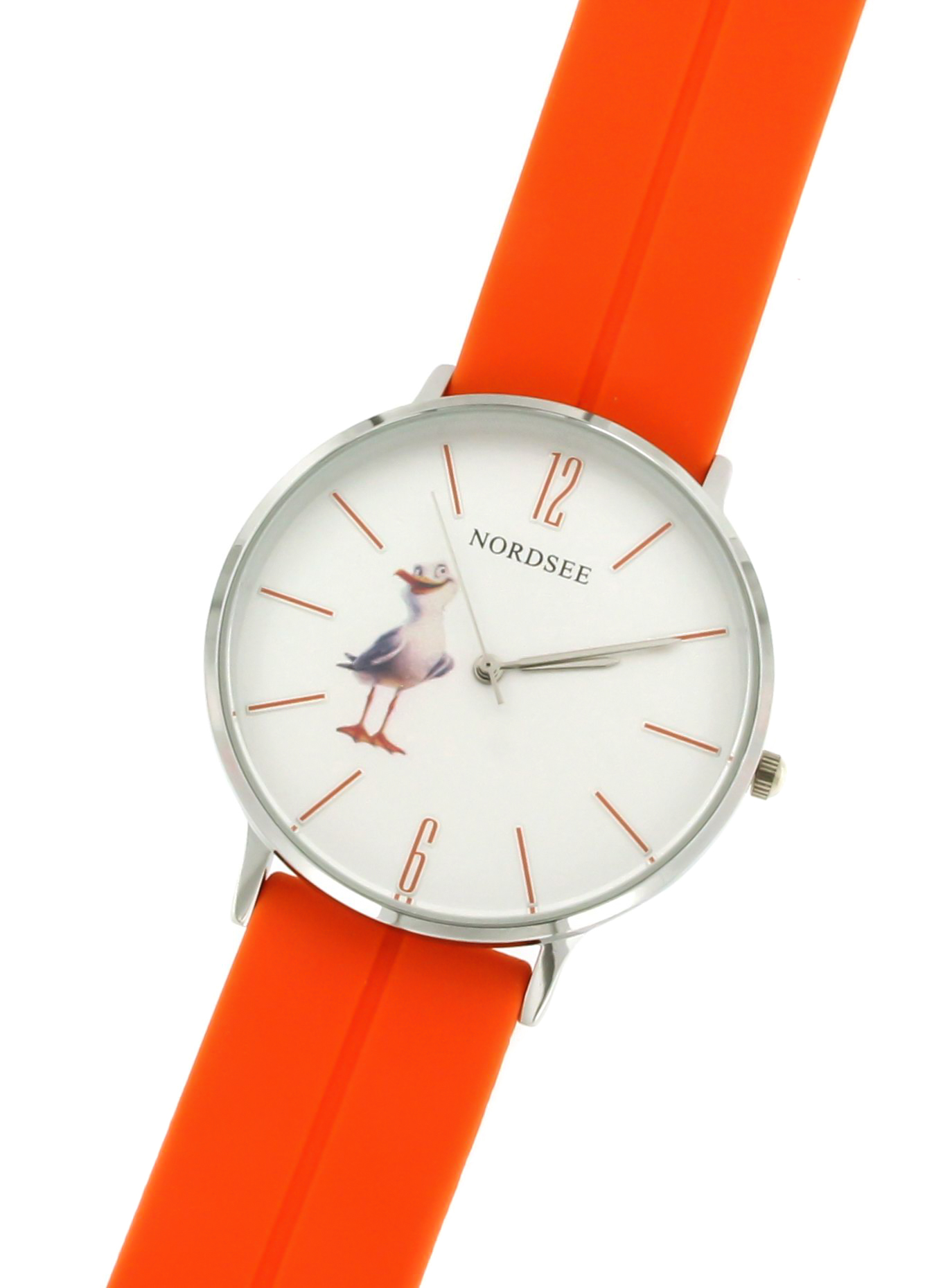 Diese charmante Nordseebäderuhr bringt sofort Urlaubsstimmung ans Handgelenk. Im Mittelpunkt steht eine lächelnde Möwe, die fröhlich vom Zifferblatt grüßt und das unbeschwerte Lebensgefühl der Nordsee einfängt. .